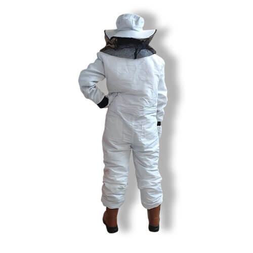 - Desain full body : Menutupi seluruh tubuh dari kepala hingga kaki, dengan resleting kuat dan jahitan rapat untuk mencegah celah masuknya lebah.